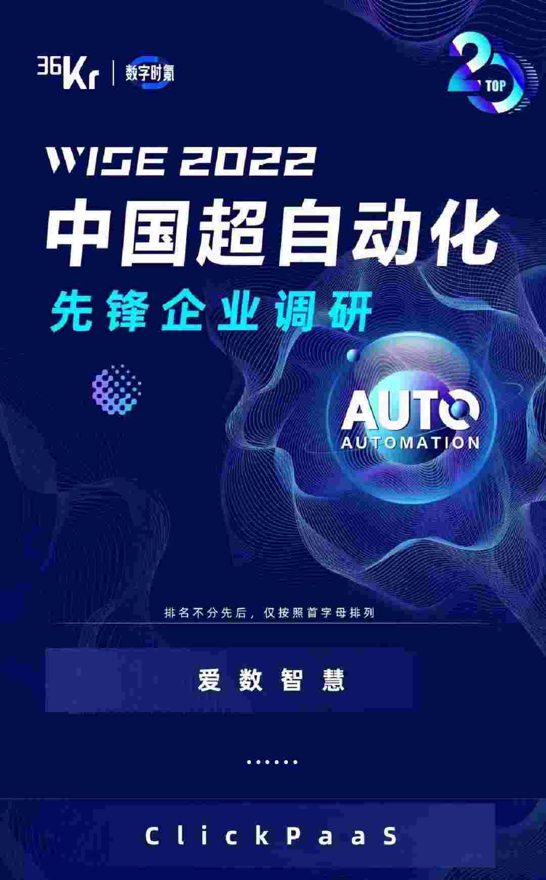 8月10日,,,由36Kr主办的WISE 2022中国超自动化峰会在杭州成功举办。。NO钱包作为国内低代码PaaS平台的领军企业,,,凭借过硬的技术实力和优质的产品能力,,在本次峰会中实力入选「2022年中国超自动化先锋企业」20强。。。
