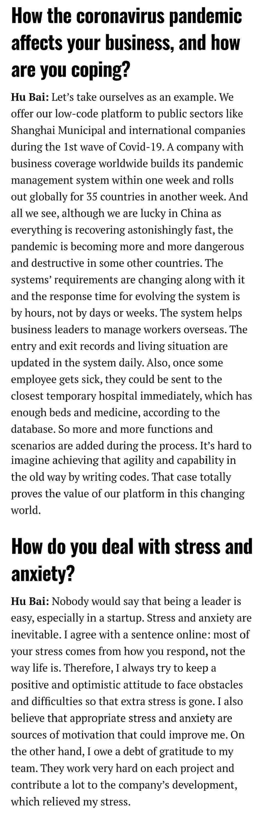 2021年年初,,爱湃斯科技CEO胡柏受邀接受法媒Startup.info的专访,,与Startup info的读者分享了自己的创业经历、、以及低代码平台NO钱包的创新之处。。。