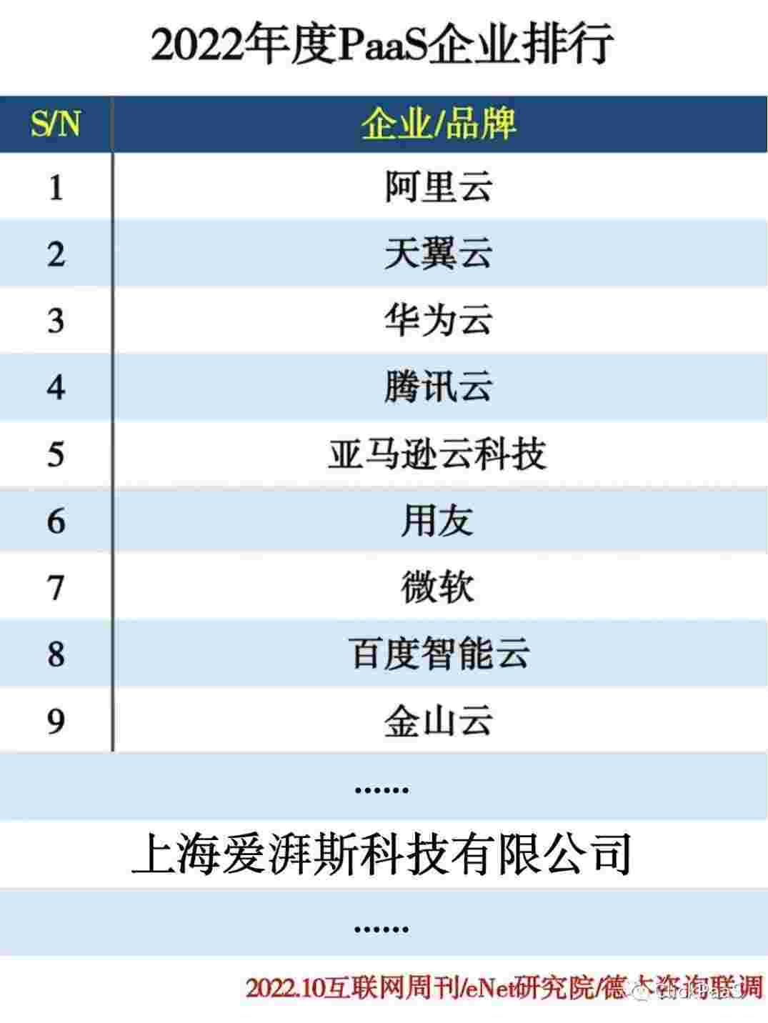近日,,,Internet Deep发布了由互联网周刊、、、eNet研究院、、、、德本咨询联合调查的”2022年度PaaS企业排行“榜单,,,上海爱湃斯科技有限公司(以下简称NO钱包),,,凭借强大的建模能力,,,,为各行业头部客户解决复杂业务需求的实践经验以及强大的集成扩展能力,,,入选2022年度PaaS企业排行TOP 50。。。。
